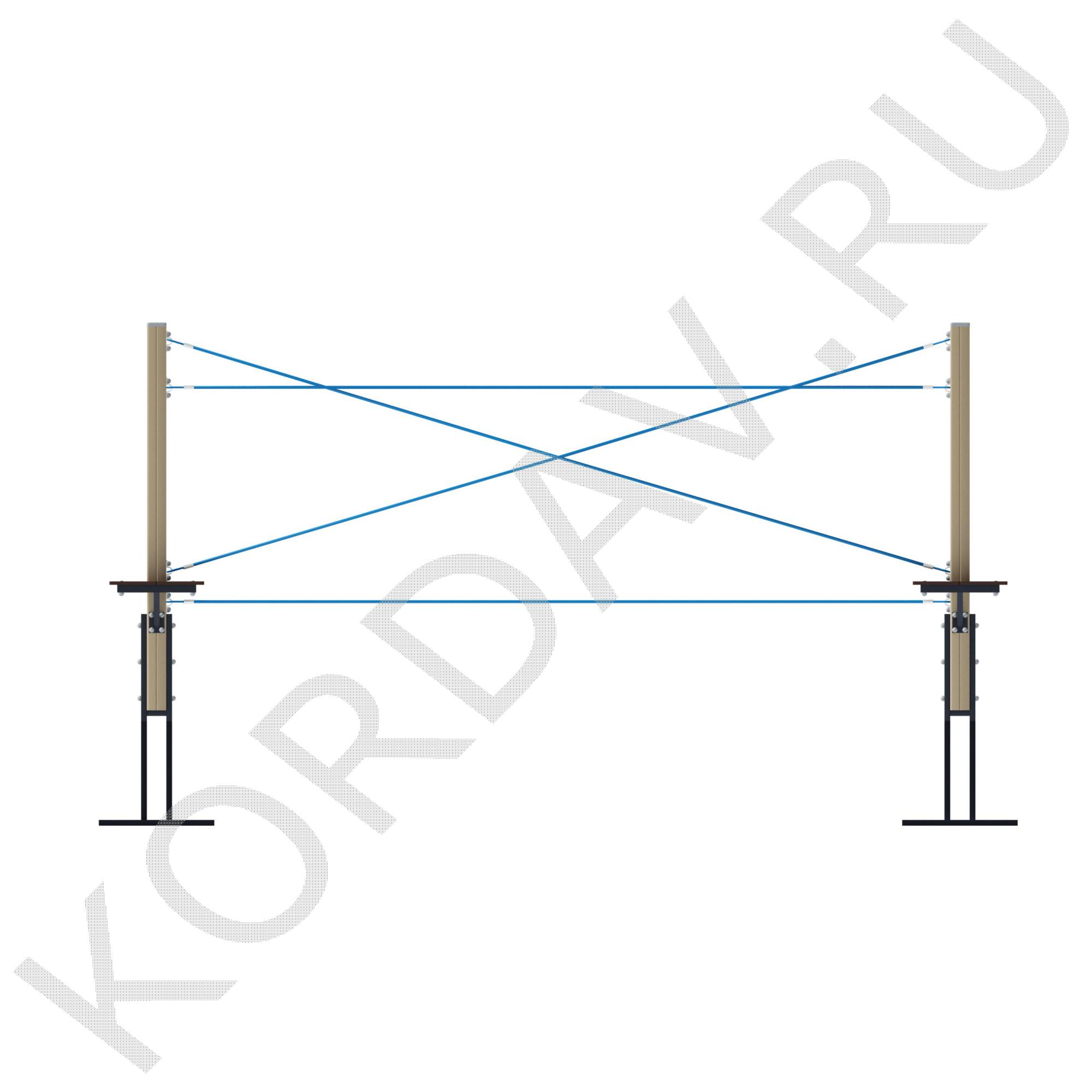 Конструкция состоит из двух столбов и натянутыми между ними канатов.