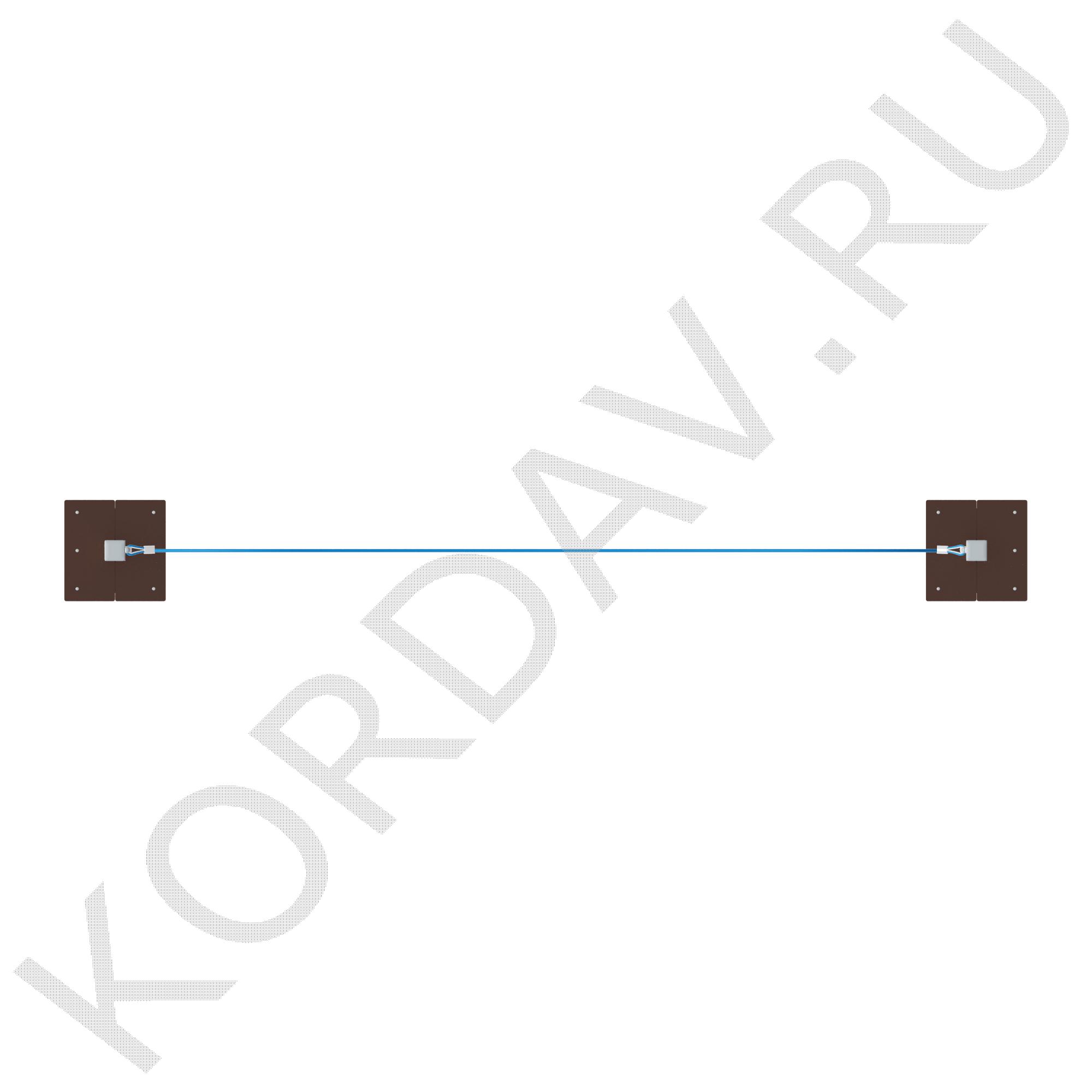 2. Лаз канатный — выполнен из шестипрядного армированного полиамидного каната (тросовая свивка, диаметр 16 мм). В комплекте 4 каната различной длины. Крепление к столбам — коуши и скобы. Размер: 4050×1424 мм. Количество: 1 комп.